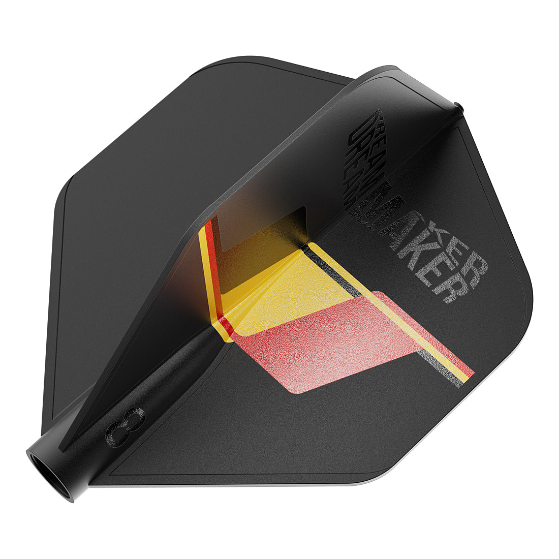 The Dimitri Van den Bergh 8 Flight has been designed in collaboration with the Belgian darts ace, with reference to the Belgium national flag.