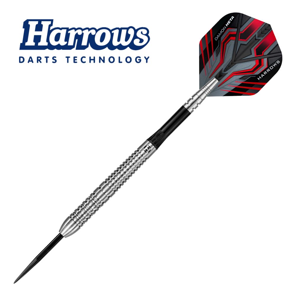 The darts are fitted with short black Alamo shafts and Damon s signature Harrows flights.