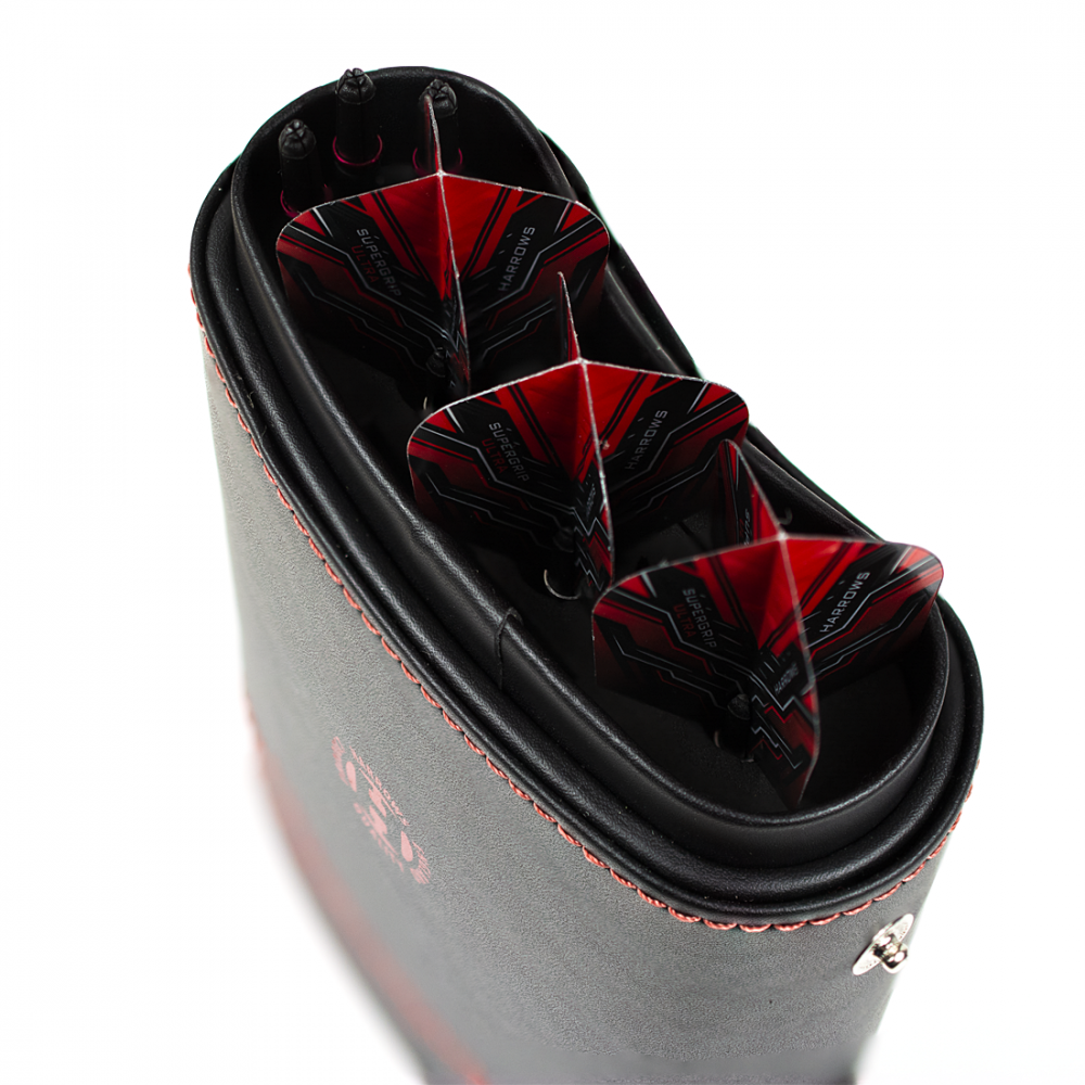 Prima’s unique double-entry storage system offers easy access to 2 sets of fully assembled darts and a selection of accessories, which are fully protected by the custom-moulded interior hard shell and held perfectly in place by its firm EVA insert.