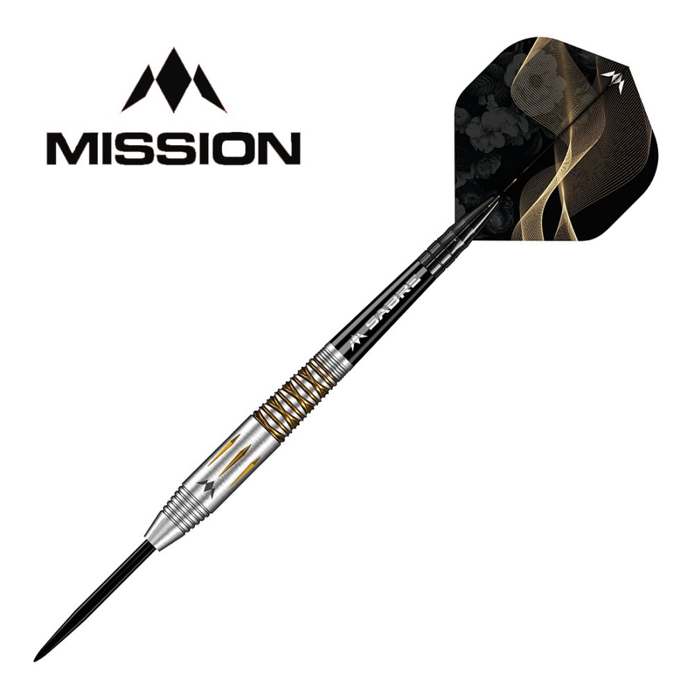 The barrel leads to a Mission Sabre shaft in black which keeps the flight firmly in place. The dart is complete with a black point and the Mission logo is laser-etched near the front of the barrel.