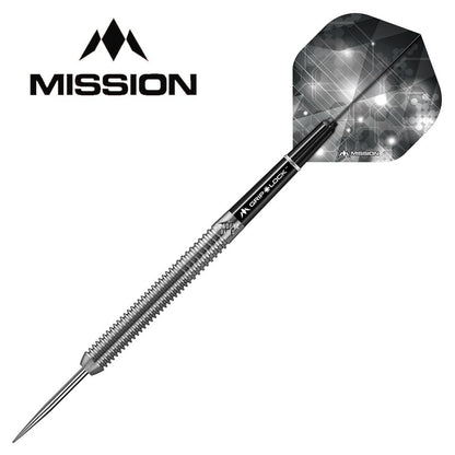 Mission Spirit Steel Tip Tungsten Darts - 90% Tungsten. Features: 90% Tungsten Barrels, 1 Sets of Mission Flights, 1 Set of Mission Shafts with S-Lock rings, Point Protector.