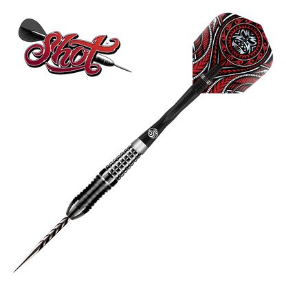 Unleash your untamed nature with Tribal Weapon Savage, inspired by the ancient arts of Pacific and Asian combat. A tough scalloped bomber style locks fingers into position for an effortless throw, while deep-milled cuts define a spine-like grip that runs from end to end. This 90% Tungsten barrel has been to hell our intensive 7-stage process and come back fighting, with a meticulous finish armoured in ultra-durable black titanium, re-machined for lethal power. You re a force to be reckoned with.