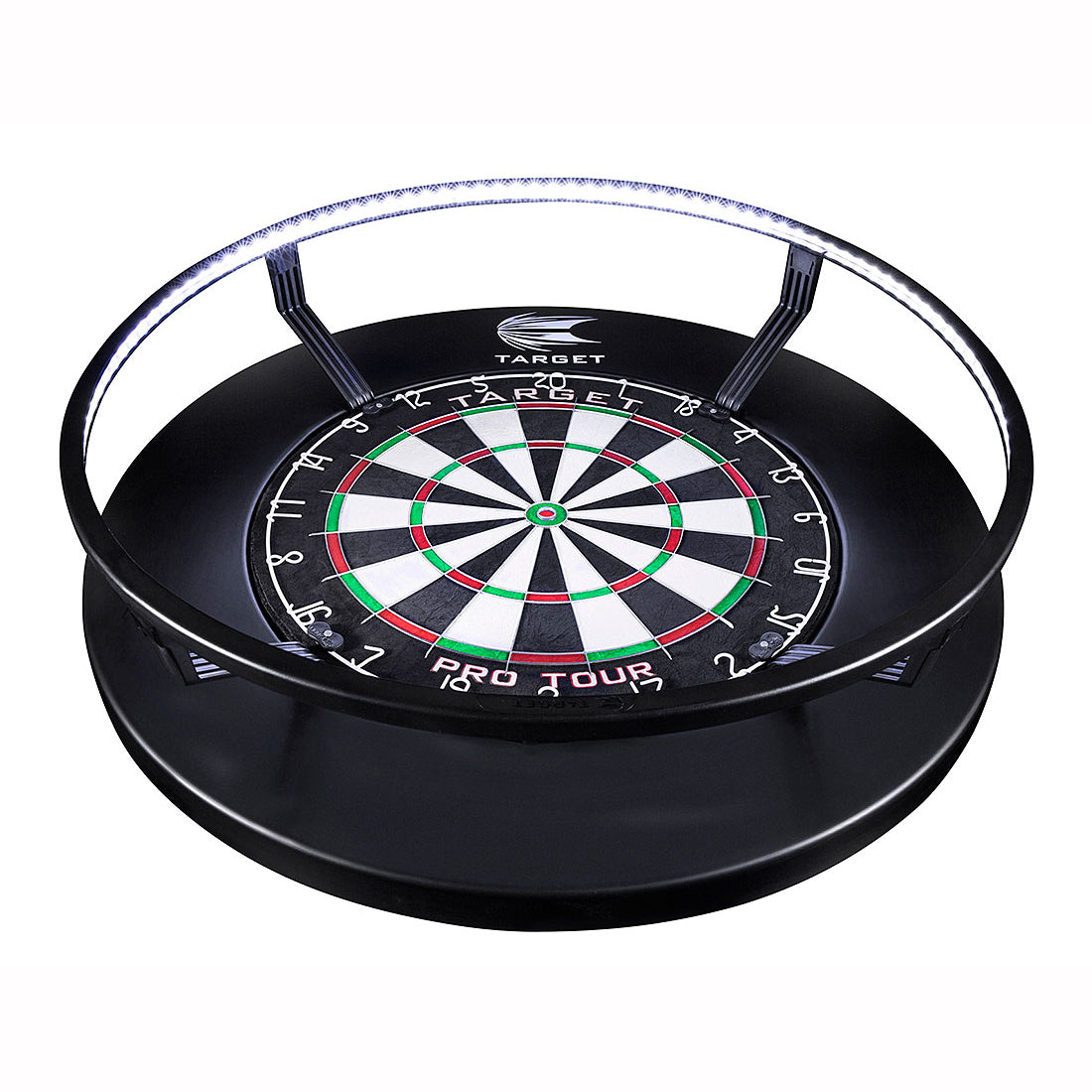 You can use the Corona with a Dartboard and surround, Dartboard Cabinet set or just a dartboard on its own. The Corona also works with any Dartboard bracket.