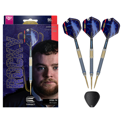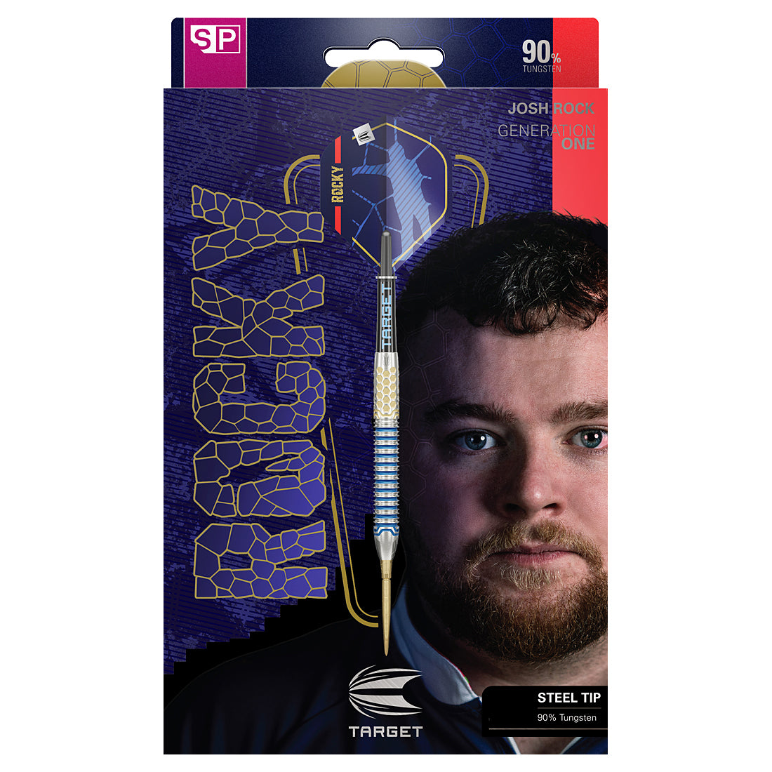 Josh Rock joins Team Target in 2025, as the 2024 PDC Dutch Darts Championship winner and 2022 PDC World Youth Champion. Introducing his Generation 1 darts, designed to his exact match play requirements. The 90% tungsten barrel is straight with a tapered nose, featuring unique precision milling with a dynamic celled grip design, offering enhanced control and a consistent release. The intricate geometric cell pattern, paired with a striking blue and gold aesthetic.
