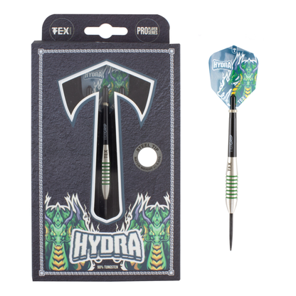 Inspired by Greek mythology, the Hydra Dart is bold and colourful while made precisely through machined technology. With quality materials and TEX grip shafts, they have created a beautifully designed 90% tungsten dart.