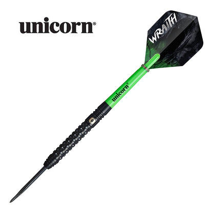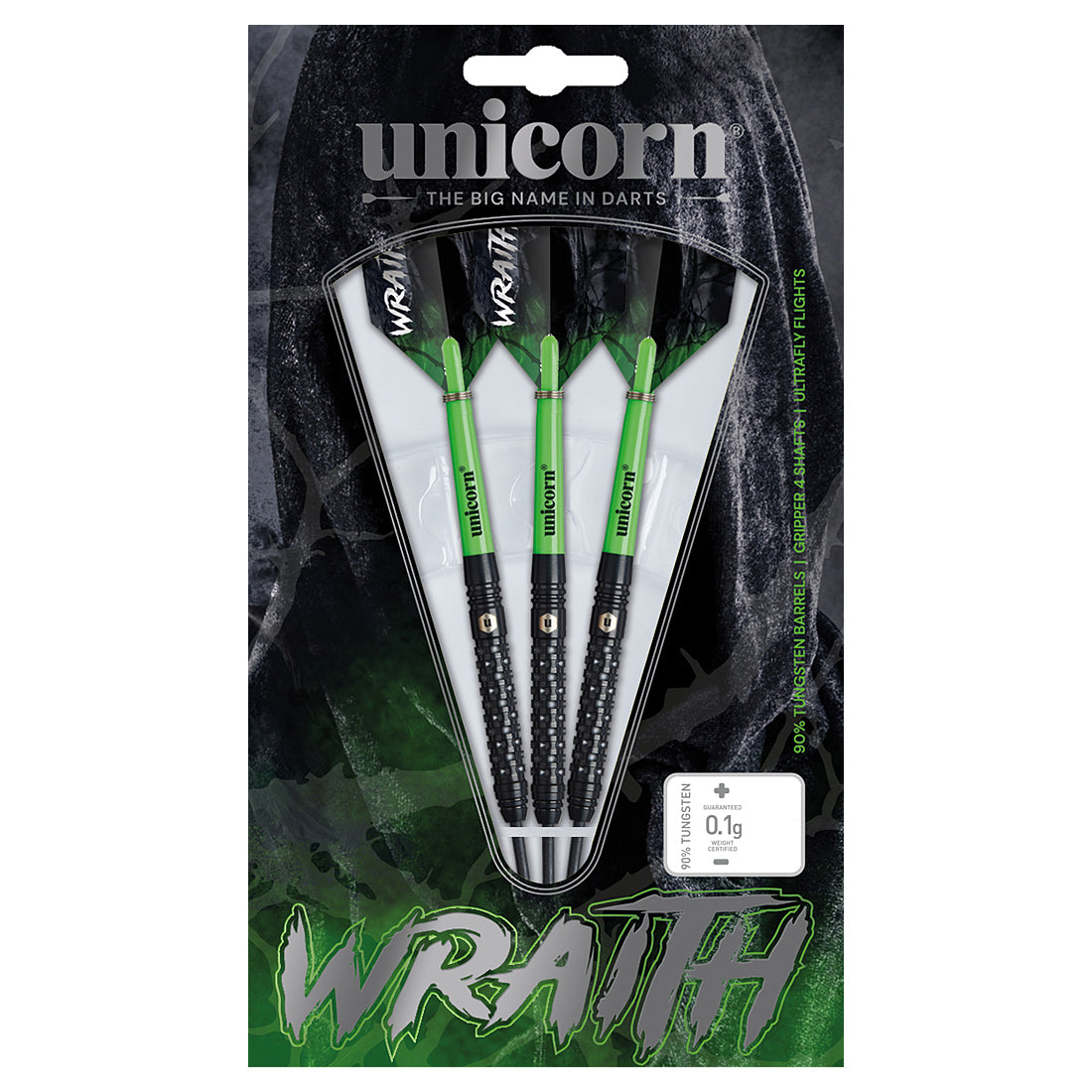 The 90% Tungsten Barrels are stunningly complemented by the Stealth Black Titanium Coating, striking new Green Gripper 4 Neon Shafts, incredible Wraith Ultrafly .100 micron Flights and the patented Unicorn Volute Points (TM) - phenomenal grip which leaves no damage to the dartboard!